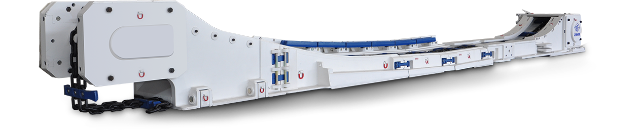 本系列产品中部槽是由铸造槽帮与 中、底板焊接而成,涵盖槽宽从630~ 1250mm全系列刮板输送机,能够适 应一般中厚煤层、特厚煤层,配合配套 的顺槽转载机、破碎机、转载机自移和 皮带机自移机尾等,能够满足年产50 ~1000万吨的井工采煤工作面的使用 要求。